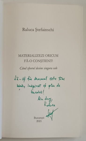 MATERIALIZEZI ORICUM , FA - O CONSTIENT , CAND ZBORUL DEVINE SINGURA CALE de RALUCA STEFAINSCHI , 2021 *DEDICATIE