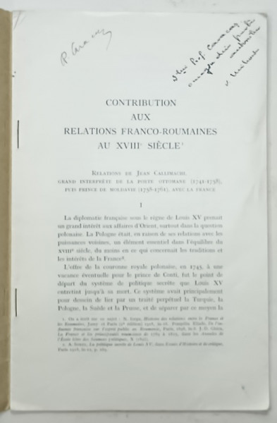 MELANGES OFFERTS A M. NICOLAS IORGA , PAR SES AMIS DE FRANCE ET DE PAYS DE LANGUE FRANCAISE - EXTRAIT , 1933, DEDICATIE *
