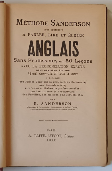 METHODE SANDERSON POUR APPRENDRE A PARLER , LIRE ET ECRIRE , ANGLAIS SANS PROFESSEUR , EN 50 LECONS par E. SANDERSON , 1939