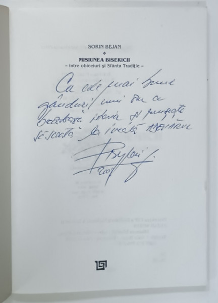 MISIUNEA BISERICII , INTRE OBICEIURI SI SFANTA TRADITIE de SORIN BEJAN , 2004 , DEDICATIE *