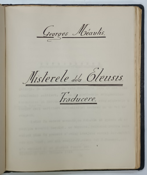 MISTERELE DE LA ELEUSIS , TEZA DE LICENTA de SARBESCU TIBERIA , 1936 , EXEMPLAR DACTILOGRAFIAT