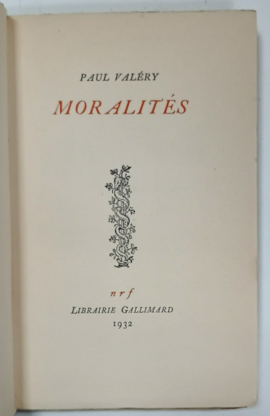MORALITES par PAUL VALERY , EXEMPLAR NUMEROTAT 2553 DIN 4000 , VIGNIETE GRAVATE , 1932