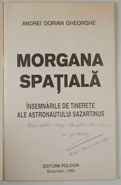 MORGANA SPATIALA , INSEMNARILE DE TINERETE ALE ASTRONAUTULUI SAZARTINUS , POEZII de ANDREI DORIAN GHEORGHE , 1993 *DEDICATIE