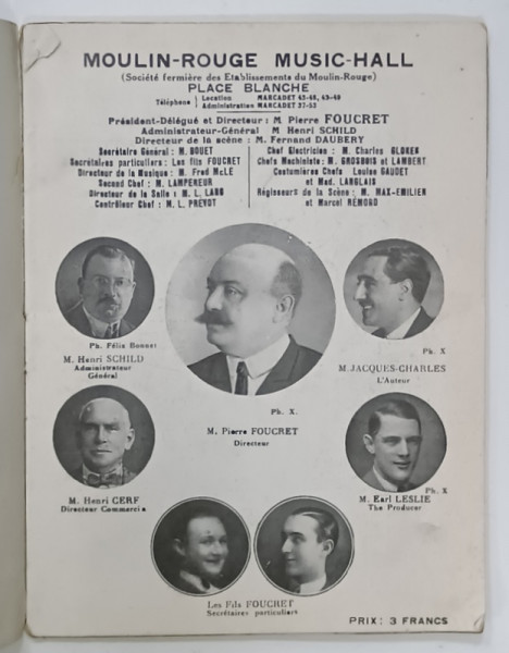 MOULIN - ROUGE , MUSIC - HALL , direction PIERRE FOUCRET , CAIET - PROGRAM , INCEPUTUL SEC. XX