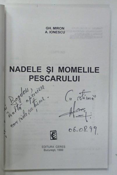 NADELE SI MOMELILE PESCARULUI de GH. MIRON si A. IONESCU , 1999 , DEDICATIE *