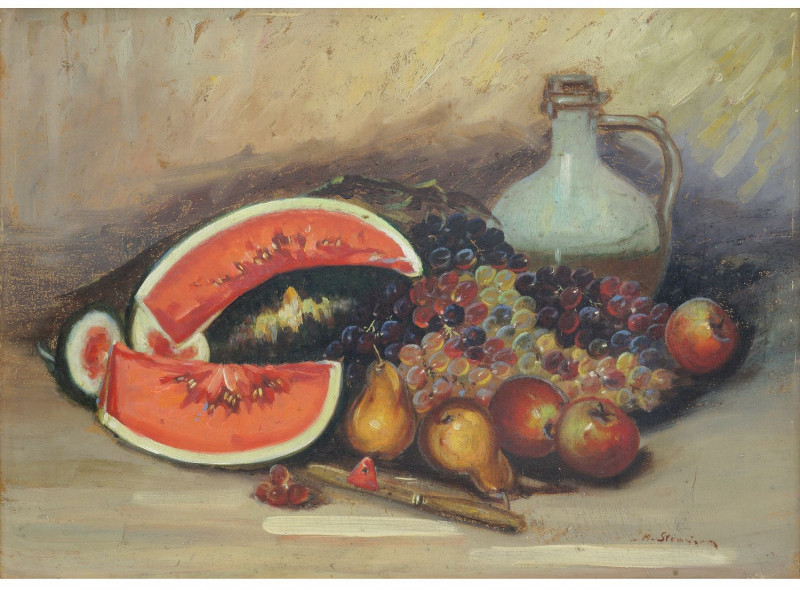 Natura statica cu fructe si damigeana - Semnat Stancescu
