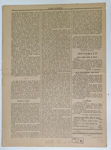 NEAMUL ROMANESC , FOAIA PARTIDULUI NATIONALIST - DEMOCRAT , No. 47 , 1914