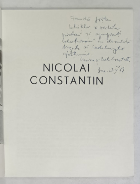 NICOLAI CONSTANTIN , CATALOG DE EXPOZITIE , 1982 , DEDICATIE *
