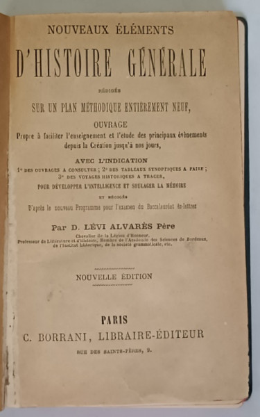 NOUVEAUX ELEMENTS D ' HISTOIRE GENERALE par D. LEVI ALVARES PERE , 1883