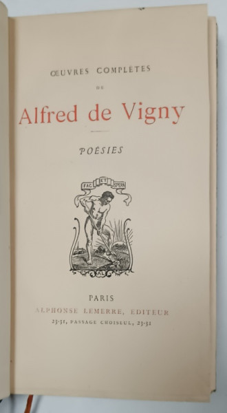 OEUVRES COMPLETES de ALFRED DE VIGNY : POESIES , 1884 , LEGATURA DE EPOCA , SEMNATA