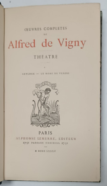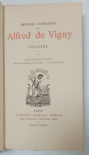 OEUVRES COMPLETES de ALFRED de VIGNY : THEATRE , VOLUMELE I- II , 1885 , LEGATURA DE EPOCA , SEMNATA
