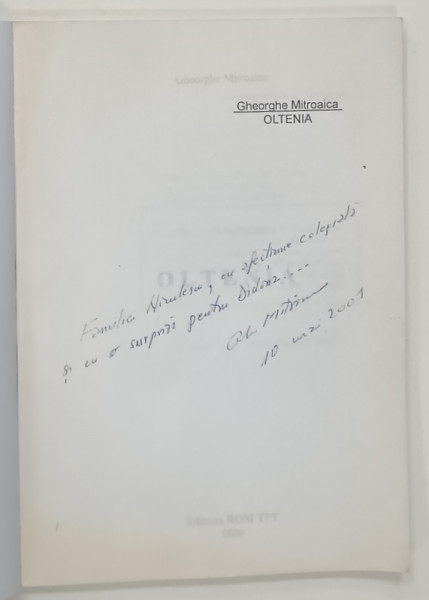 OLTENIA de GH. MITROAICA , 2000, DEDICATIE *