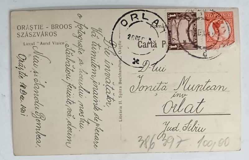 ORASTIE , LICEUL ' AUREL VLAICU ' , FOTOGRAFIE FORMAT CARTE POSTALA , 1931