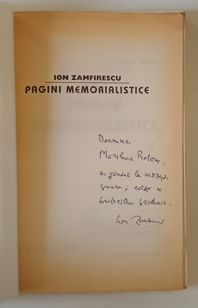 PAGINI MEMORIALISTICE de ION ZAMFIRESCU , 1995 *DEDICATIE