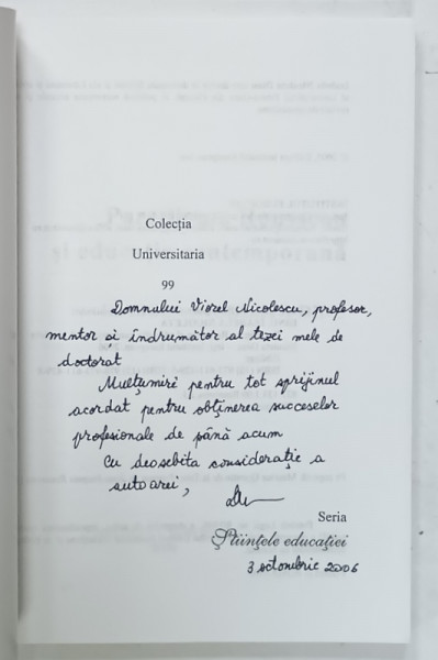 PARADIGMA ROUSSEAU si EDUCATIA CONTEMPORANA de IZABELA NICOLETA DINU , 2006 , DEDICATIE *