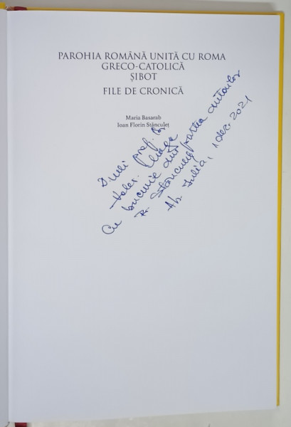PAROHIA ROMANA UNITA CU ROMA GRECO - CATOLICA SIBOT , FILE DE CRONICA de MARIA BASARAB si IOAN FLORIN STANCULET , 2021 *DEDICATIE