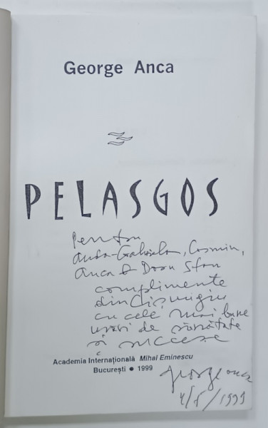PELASGOS de GEORGE ANCA , 1999 , DEDICATIE *
