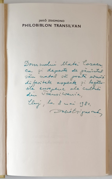 PHILOBIBLON TRANSILVAN , STUDII de JAKO ZSIGMOND , 1977 *DEDICATIE