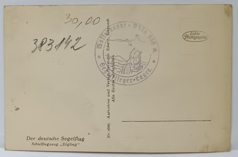 PLANOR GERMAN DE ANTRENAMENT ' ZOGLING ' , CARTE POSTALA ILUSTRATA , INTERBELICA
