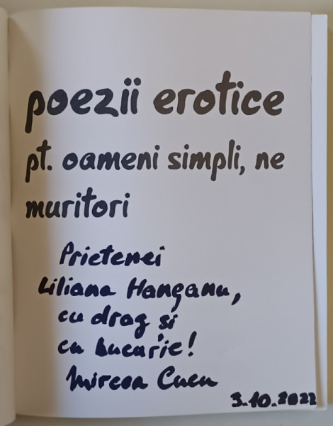 POEZII EROTICE , PT. OAMENI SIMPLI , NE MURITORI de MIRCEA CUCU , 2022 *DEDICATIE