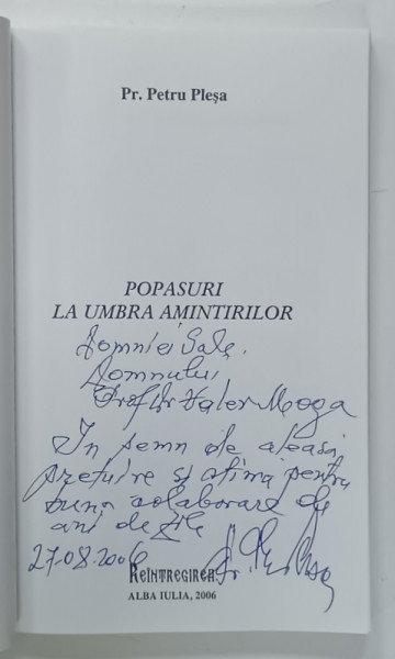 POPASURI LA UMBRA AMINTIRILOR de Pr. Ic. Stavr. PETRU PLESA , 2006 , DEDICATIE *