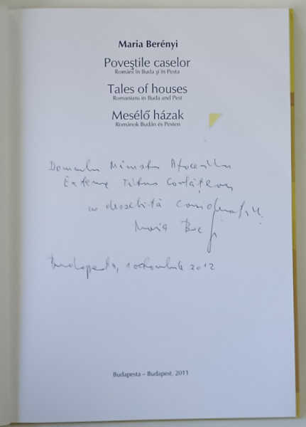 POVESTILE CASELOR , ROMANI IN BUDA SI IN PESTE de MARIA BERENYI , 2011 *DEDICATIE