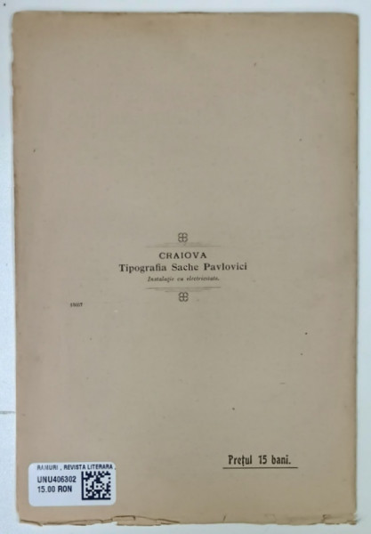 RAMURI , REVISTA LITERARA , ANUL VI , NO. 9 , 1910