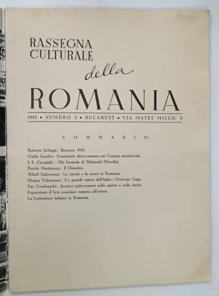 RASSEGNA CULTURALE DELLA ROMANIA , REVISTA ILUSTRATA CU TEXT IN LIMBA ITALIANA , NUMERO 3 , BUCAREST , 1943