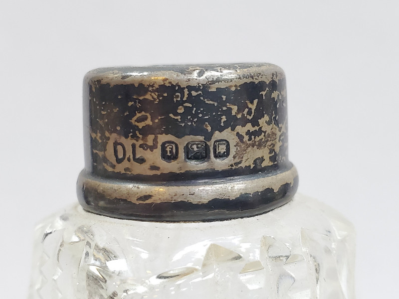 Recipient din cristal cu montura din argint pentru parfum.
