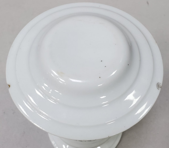 Recipient din ceramica pentru farmacie. H = 17.5 cm Obs: Doua mici defecte la capac