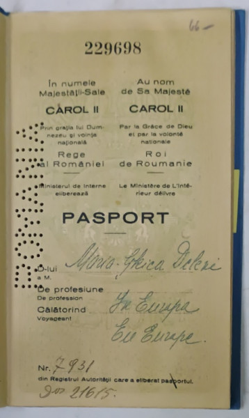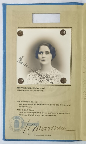 COPERTA CU STEMA REGALA , ALBASTRA CU LITERE AURII , SEMNATA DE PREFECTUL POLITIEI G. MARINESCU