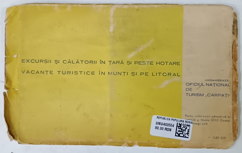 REPUBLICA POPULARA ROMANA , HARTA TURISTICA , OFICIUL NATIONAL DE TURISM ' CARPATI ' , 1960