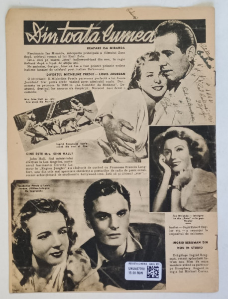 REVISTA CINEMA , ANUL XXI , NUMARUL 656 , 21 AUGUST - 4 SEPTEMBRIE , 1944
