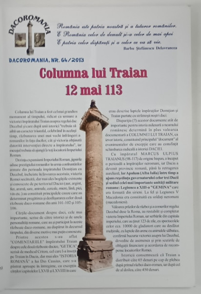 REVISTA DACOROMANIA , COLUMNA LUI TRAIAN , 12 MAI 113 , NUMARUL 64 , 2013