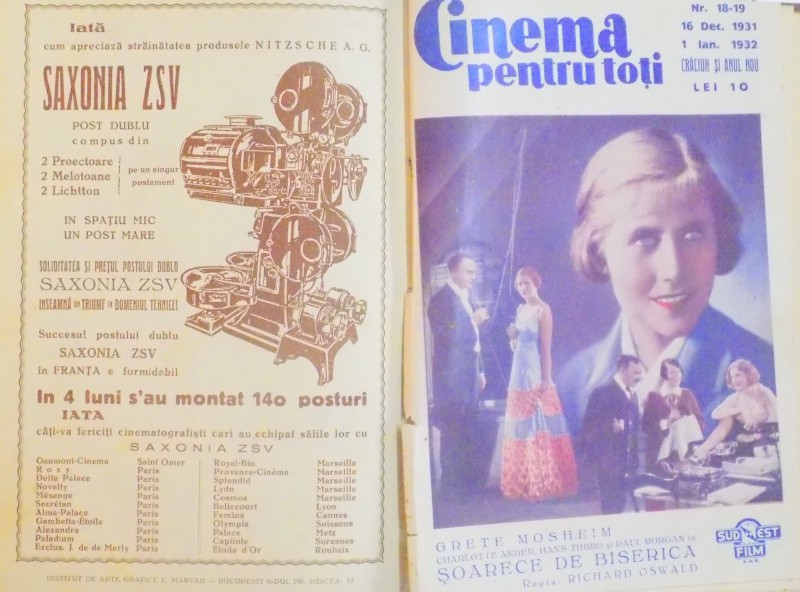 REVISTA ''CINEMA SONOR'' - 20 MARTIE 1931