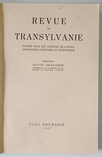 REVUE DE TRANSYLVANIE , BIBLIOGRAPHIE DE LA TRANSYLVANIE ROUMAINE , TOME III , NO. 4 , 1937