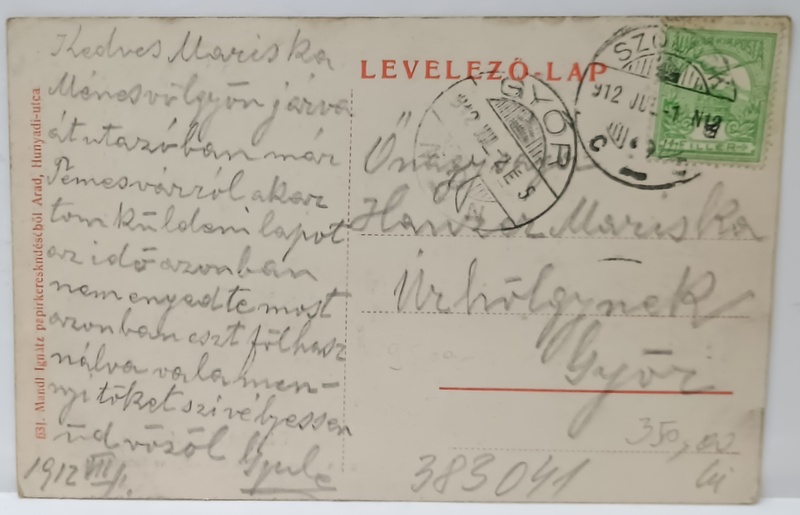 SALUTARI DIN ARAD , HOTELUL ' RONAY A. JANOS ' SI STATIA DE AUTOBUZ , CARTE POSTALA , 1912