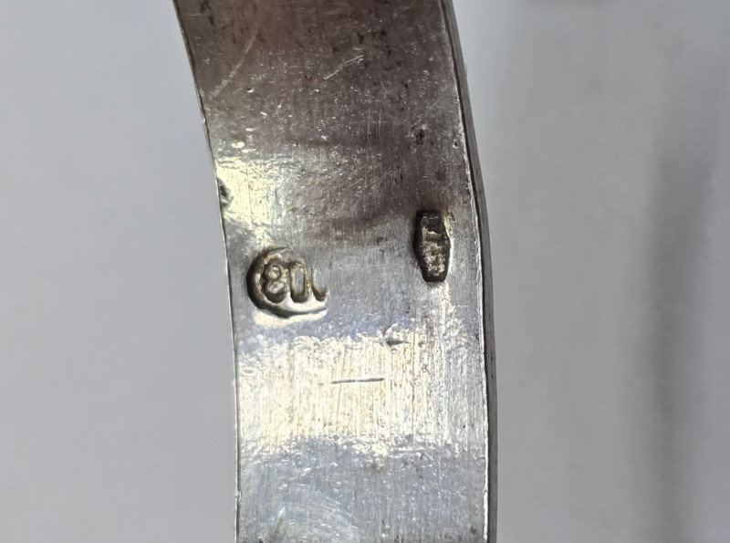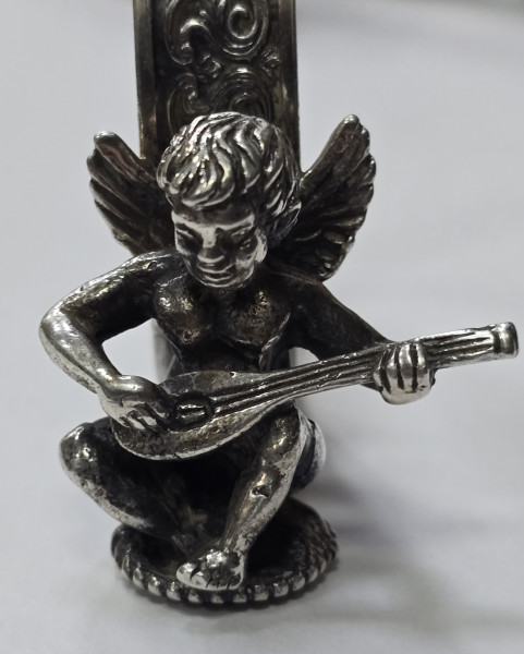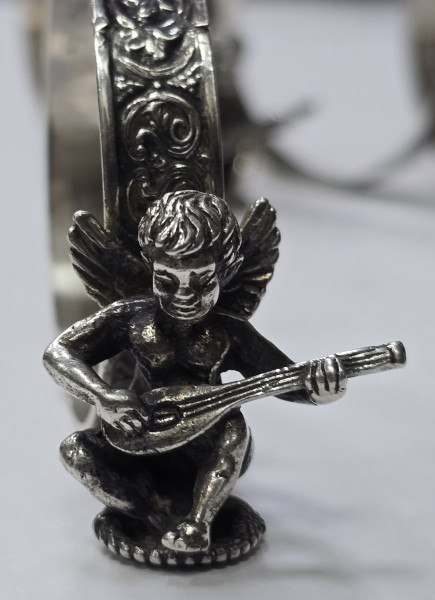Sase inele din argint marcat, pentru servet, decorate cu amoras.