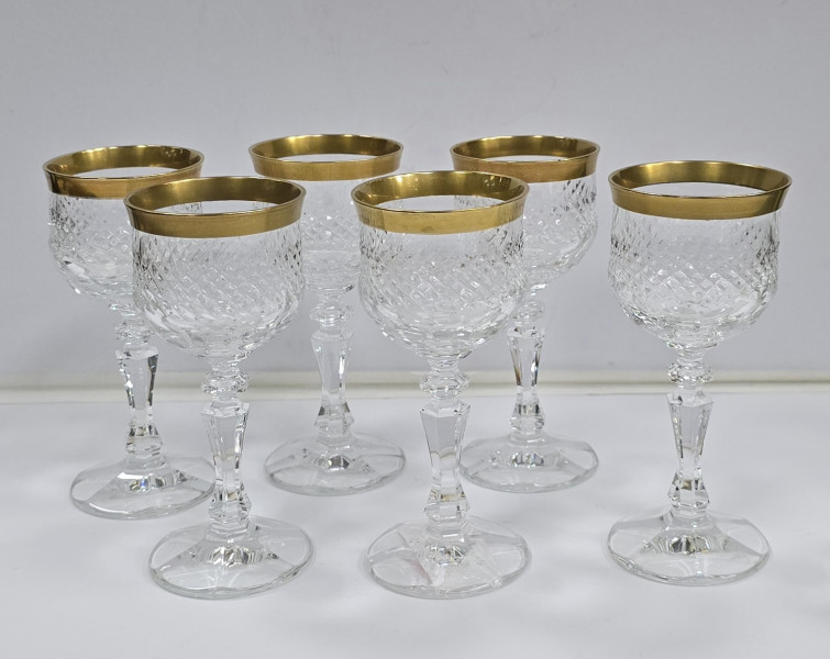 Sase pahare din cristal decorate cu aur coloidal pentru servit bauturi aperitive, Secol XX