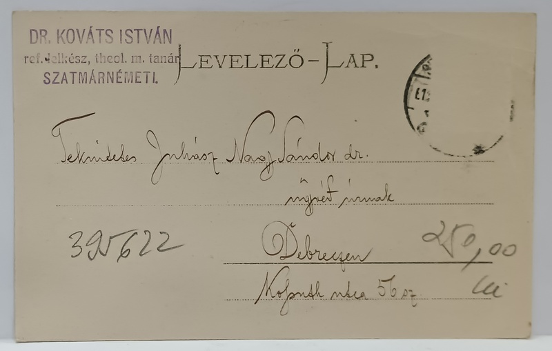 MONOCROMA, CIRCULATA , CLASICA , CONTINE STAMPILA DR. KOVATS ISTVAN , TEOLOG