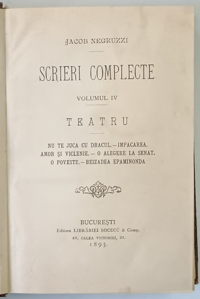 VOLUMUL IV ( TEATRU , NU TE JUCA CU DRACUL , IMPACAREA , AMOR SI VICLENIE , O ALEGERE LA SENAT , O POVESTE , BEIZADEA EPAMINODA ) / 561 PAG. ,