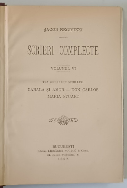 VOLUMUL VI ( TRADUCERI DIN SCHILLER : CABALA SI AMOR , DON CARLOS , MARIA STUART ) / 634 PAG. ,