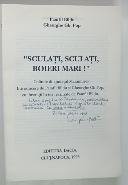 SCULATI , SCULATI , BOIERI MARI ! COLINDE DIN JUDETUL MARAMURES de PAMFIL BILTIU si GHEORGHE GH. POP , 1996 *DEDICATIE