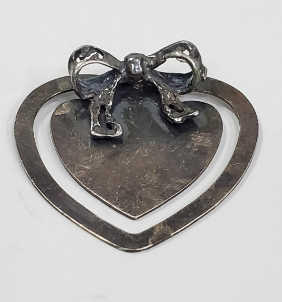 Semn de carte din argint in forma de inima decorat cu funda, Secol XX