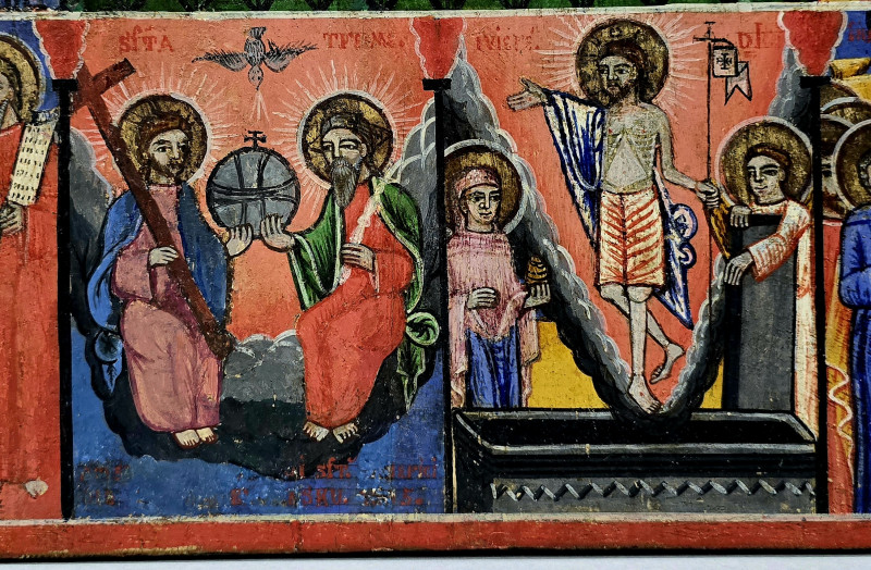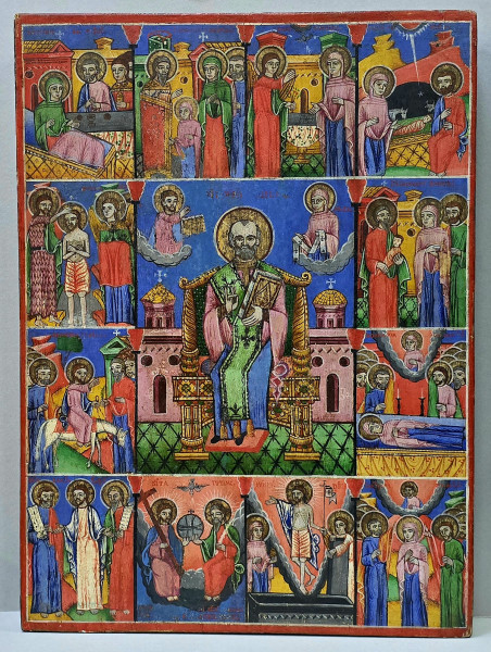 Icoana Romaneasca de mari dimensiuni, semnatura si datare ilizibila.