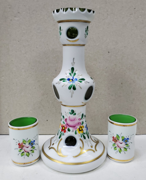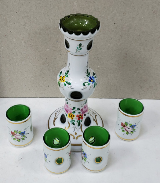 Sfesnic si patru paharute pictate manual, Bohemia, Anii 40