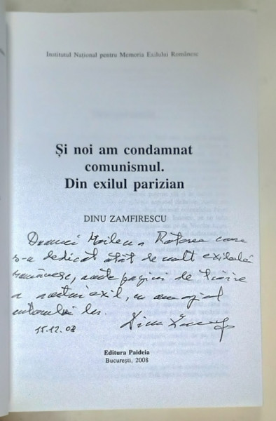SI NOI AM CONDAMNAT COMUNISMUL . DIN EXILUL PARIZIAN de DINU ZAMFIRESCU , 2008 , DEDICATIE *