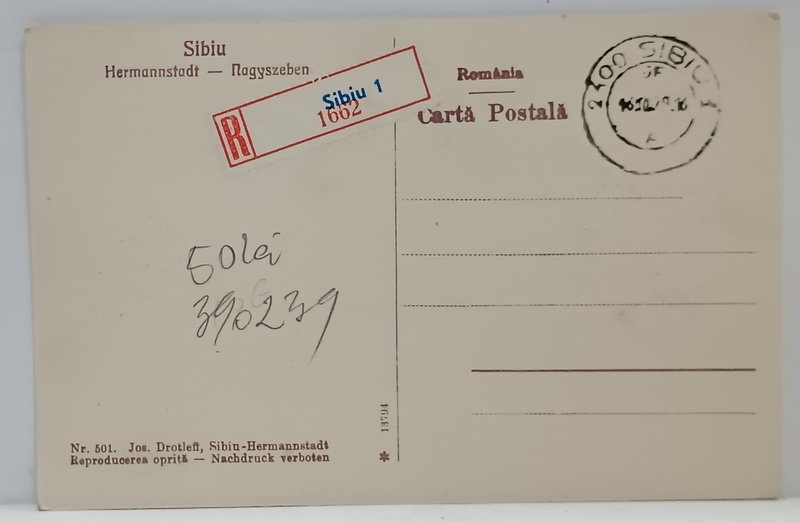 SIBIU , VEDERE DE ANSAMBLU , 1916 , CARTE POSTALA REPRODUSA , CU TIMBRU SI STAMPILA DIN 1979