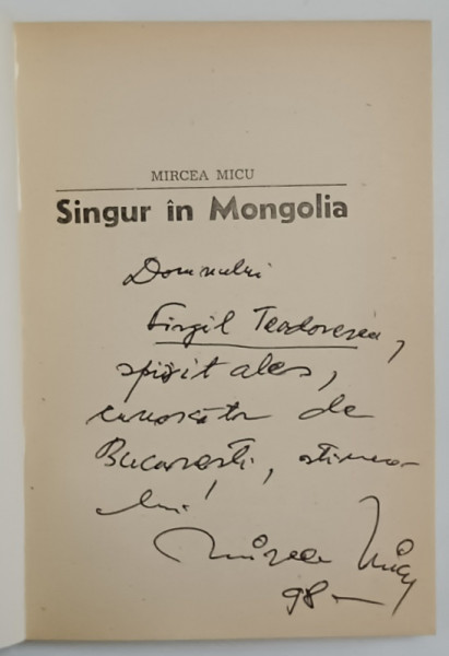 SINGUR IN MONGOLIA de MIRCEA MICU , 1992 *DEDICATIE