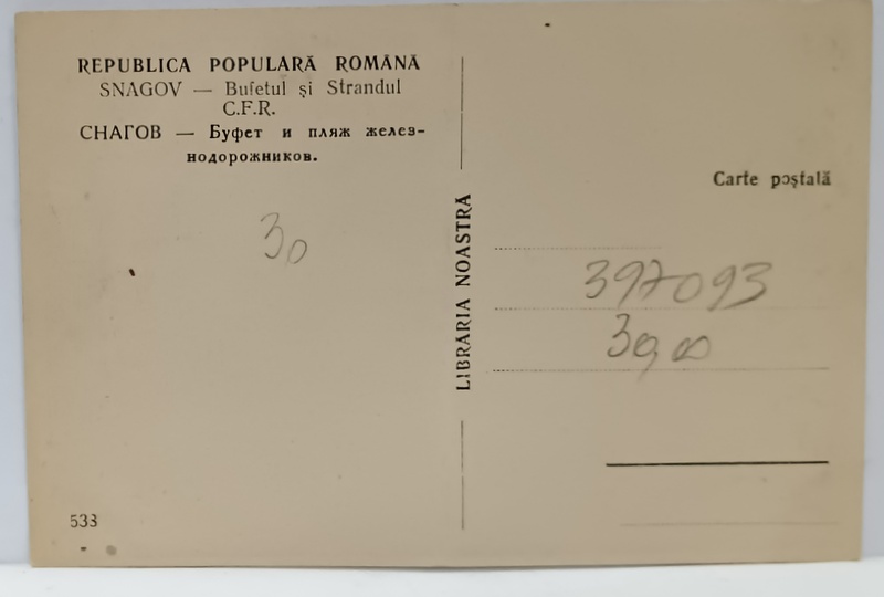 SNAGOV , BUFETUL SI STRANDUL C.F.R. , CARTE POSTALA ILUSTRATA , ANII '50
